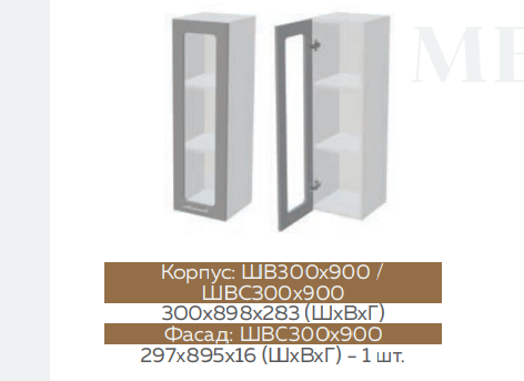 Глубина верхних шкафов: 300 мм